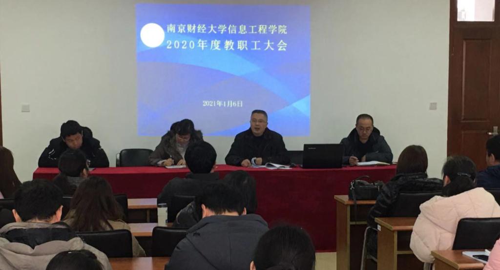 按照《南京财经大学教职工代表大会暂行条例》及《南京财经大学二级教职工代表大会暂行条例》相关要求,经过认真的筹备,2020年度信息工程学院教职工大会于2021年1月6日下午1:30在仙林德业楼406会议室隆重召开。信息工程学院全体中层领导干部,系、教研室主任以及在宁教职员工等总共71人出席大会,会议由院党委书记周亚芳主持。