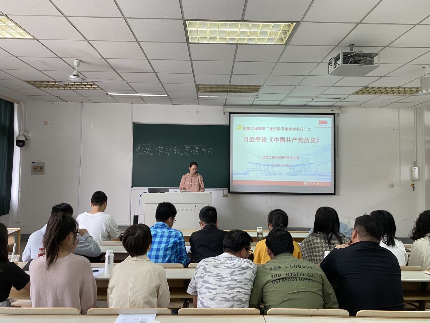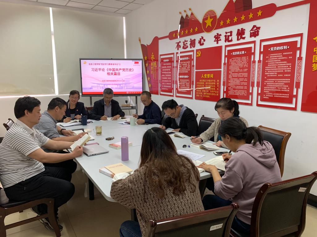 为切实提升专题学习成效,推进学校党史学习教育走深走实,根据我校《关于开展“党史学习教育读书日”的通知》,4月28日,信息工程学院党委及下属各党支部在仙林校区相应会议室、教室等地认真开展“党史学习教育读书日”,集体学习习近平《论中国共产党历史》4个篇目,即:《实现中华民族伟大复兴是中华民族近代以来最伟大的梦想》、《学习党史、国史是坚持和发展中国特色社会主义的必修课》、《中国革命历史是最好的营养剂》和《学好党史、新中国史、改革开放史、社会主义发展》。