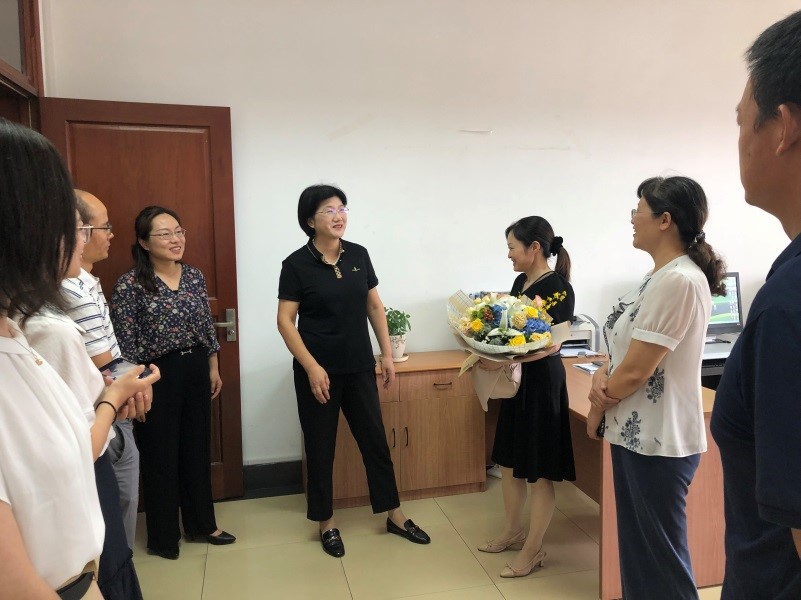 2022年9月8日下午,校党委常委、副校长邱伟芬教授来到免费足球直播app ,代表校党委校行政慰问学院教学科研办主任张水红老师,感谢她二十多年在教务秘书岗位上所付出的辛勤努力,并向她送去教师节和中秋节的祝福和问候。国际合作与交流处杨智华副处长(主持工作)、校人事处胡倩老师陪同参加了慰问。