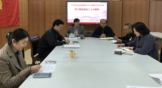 11月16日下午,信息工程学院在德业楼404会议室召开院党委理论学习中心组学习研讨会,集中学习研讨党的二十大精神。全体院领导、党委委员参加集中学习研讨。院党委书记周亚芳同志主持了会议。