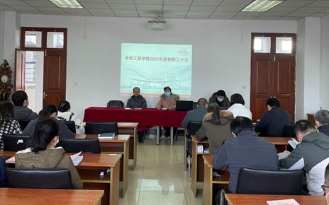经过认真的组织筹备,2022年12月14日下午,信息工程学院2022年度教职工大会在仙林校区德业楼406会议室隆重召开。信息工程学院全体教职员工总共67人出席大会,会议由院党委书记周亚芳主持。