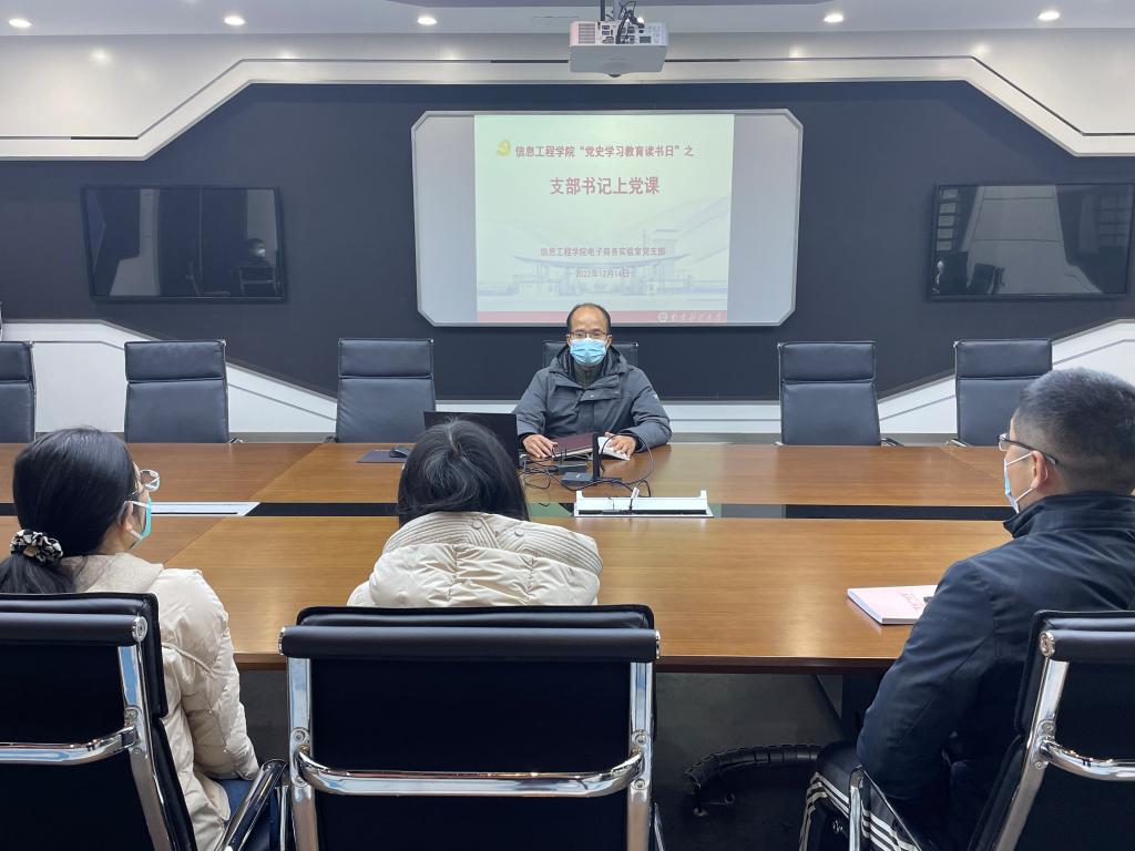 12月14日下午,信息工程学院电子商务实验室党支部书记黄健以“学习党的二十大——深刻理解中国共产党人的初心使命”为题,给电子商务实验室党支部全体党员上了专题党课。