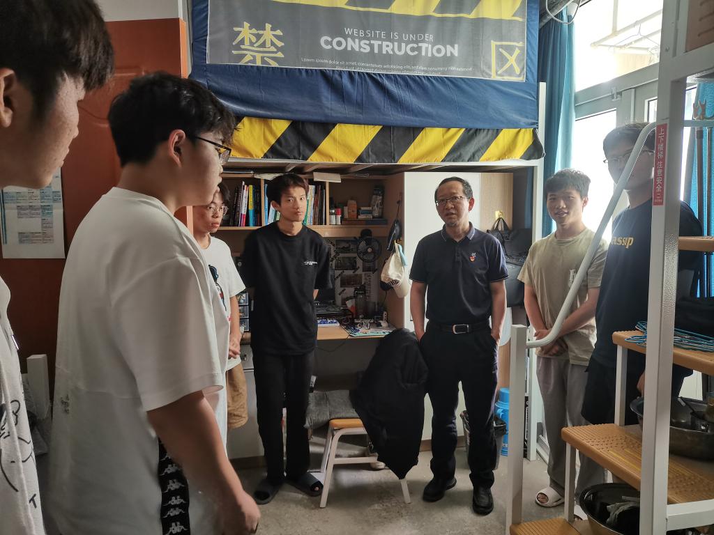 5月29日下午,院党委书记、本科生第一党支部政治辅导员张阳军来到西苑1号宿管站,走访看望结对学生宿舍的同学们。院党委副书记马健、辅导员兼本科生第一党支部书记张婷陪同走访。