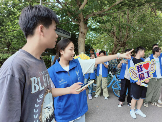 志愿者为新生们分发学院精心准备的礼物,传递幸运与快乐。新生们收到印有自己姓名和“我爱信工”字样的定制可乐、郁金香花等,欣喜不已,伴随着志愿者的美好祝福,接过集章卡,执笔在明信片上写下未来展望,于参与活动途中盖上各色印章,留下载满期许与活力的新足迹。