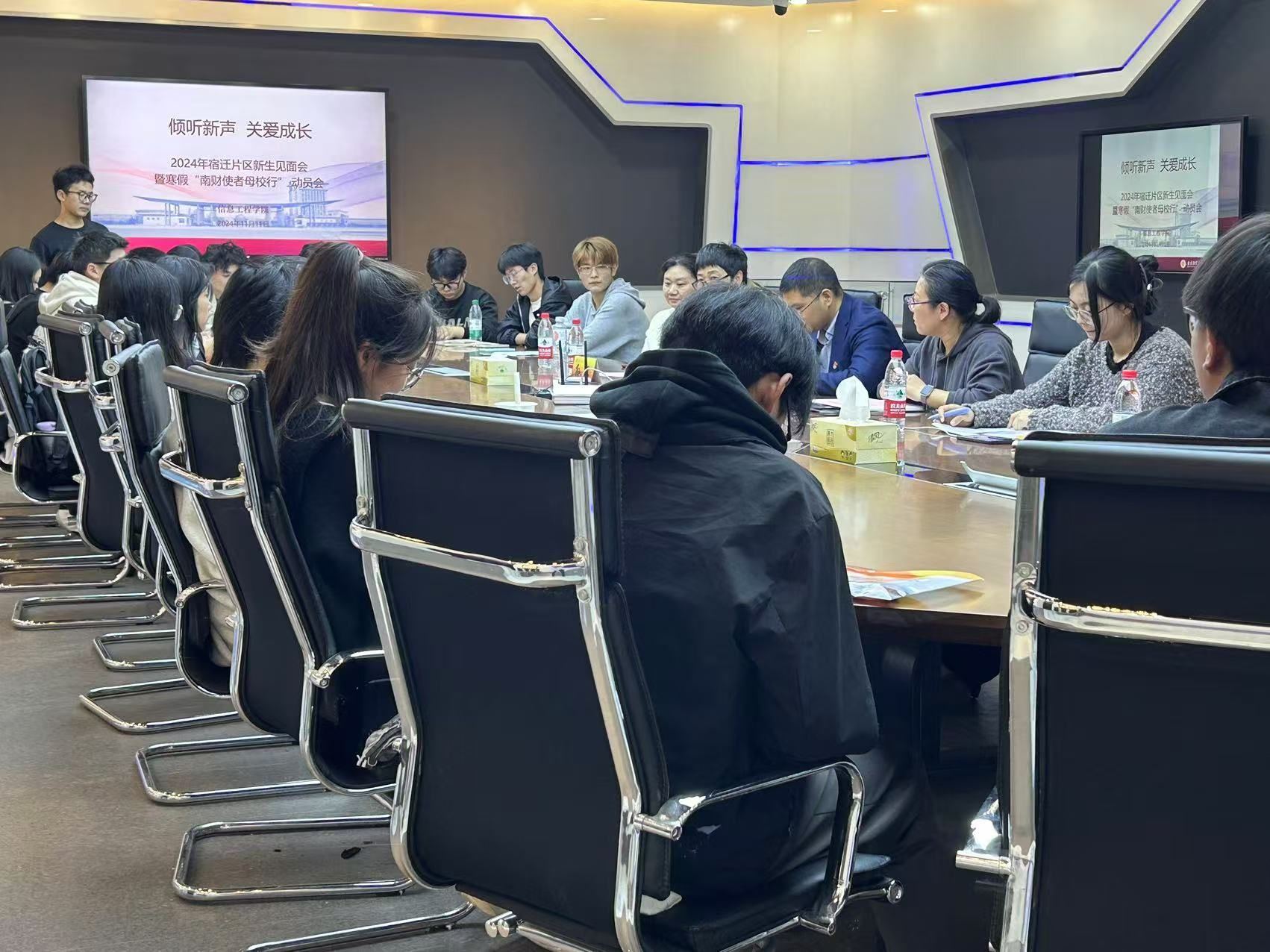 孙脉老师对2024级新生加入南京财经大学的大家庭表示欢迎与祝贺,深情回忆当时在宿迁沭阳地区招生咨询时与考生和家长交流的场景。随后张媛媛老师汇报了近三年来我校在宿迁、福建等地开展的招生宣传工作、优质生源基地维护以及取得的成绩,鼓励同学们借鉴在校生先进经验,做好南财与高中母校联系与衔接的桥梁,为学校争取更多优秀生源。