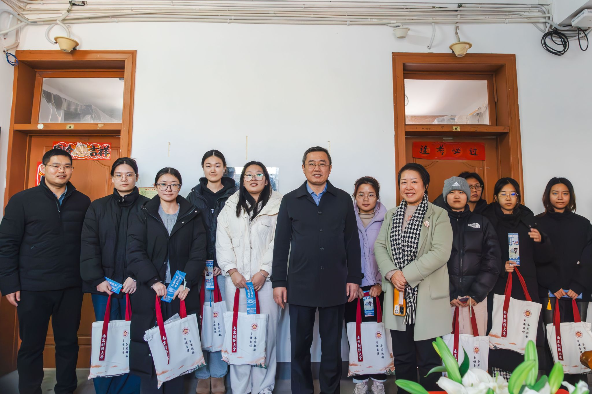 研途送温暖,助力考研梦。2025年全国硕士研究生招生考试在即,为增强考研学生的备考信心,传递温暖与力量,12月17日,党委常委、副校长赵国栋一行到仙林校区西苑5号站26-101学生宿舍,看望慰问学院考研学生,送去学校的祝福与关怀。党委学生工作部部长韩力争、副部长袁怡琨、院党委副书记马健及相关工作人员等陪同慰问。