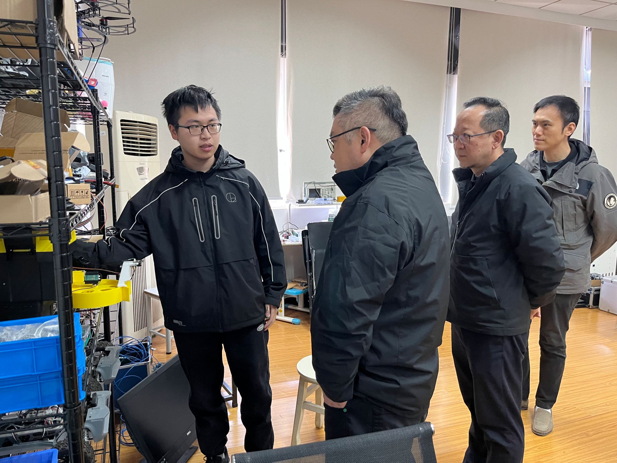 交流期间,杨卓副总裁一行在学院领导陪同下参观了机器人实验室。实验室团队成员、2023级学生郑旭洋向到访嘉宾详细介绍了实验室的研究方向与最新成果。杨卓副总裁对实验室的创新实践成果给予高度评价。