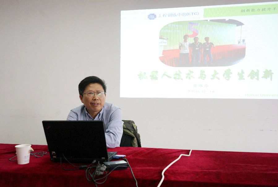 10月17日下午,应信息工程学院邀请,河海大学工程训练中心主任、高级工程师娄保东教授来我校,在仙林校区理工学科楼406会议室作了题为“机器人技术与大学生创新”的学术报告。报告会由信息工程学院党委书记韩忠愿教授主持。信息工程学院部分师生听取了报告。