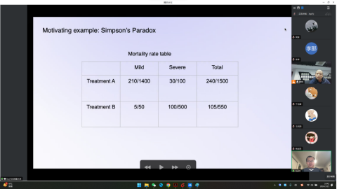 傅曦平首先在讲座中用疾病治疗方案的例子介绍了辛普森悖论,并介绍了因果关系与相关性的区别,详细讲解了如何从数据分布对因果关系进行推导,并展示了该研究在酒店收入和促销数据集上应用结果 。报告结束后,傅博士详细耐心地回答了师生们提出的问题,与王凯翔、吴骏、马丹丹等老师和同学们探讨了因果关系在深度学习、日常生活例子中的应用与思考等。整个讲座深入浅出,从朴素的例子出发引出因果关系的推到与引用,将复杂的知识讲得趣味横生,也让师生受益匪浅。
