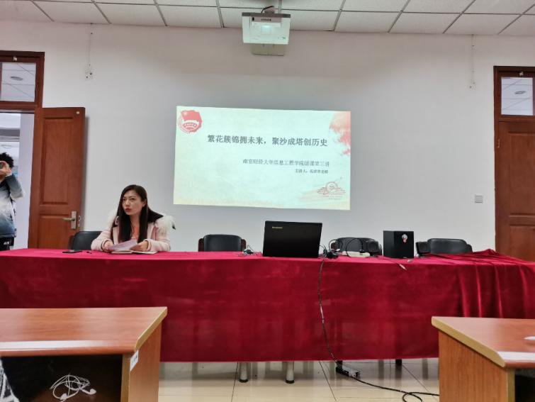 于德业楼406会议室开展的以“繁花锦簇拥未来,聚沙成塔创历史”为主题的团课活动圆满落幕。本次课程由信息工程学院18级辅导员倪青青老师担任主讲人,19级与20级各班代表参与学习。