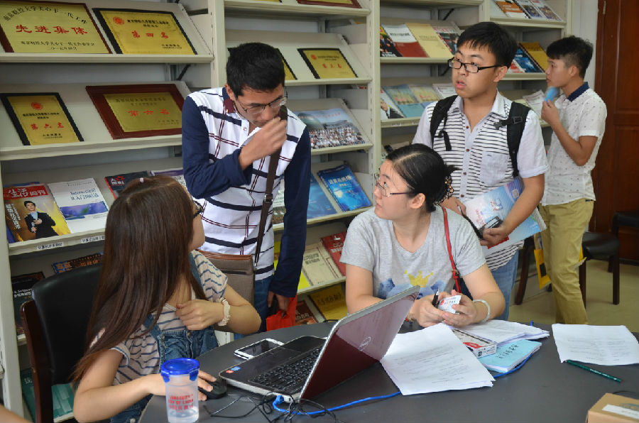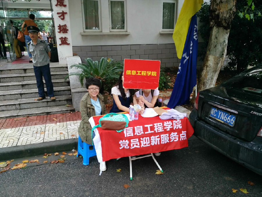 2012级、2013级学生党员自发组成迎新服务小分队,在新生宿舍门口设立党员迎新咨询服务点,为新生和家长提供咨询,帮助他们尽快熟悉校园。