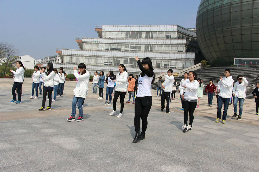 2015年4月14日上午10时,免费足球直播app 信管1301班和计算机1303班同学相约在我校图书馆前广场,开展主题团日活动,随《小苹果》的伴奏跳起了国标版“小苹果”健身操,欢快的节奏、动感的舞步与蓝天白云交相辉映,学子们动作优美,神采飞扬!