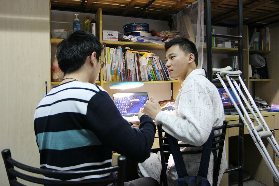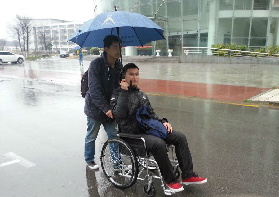 信息管理与信息系统1301班的周同学因膝盖受伤做了手术,术后有一段较长的恢复期需要坐轮椅。为不耽误学业,在家休养一段时间后该生重返校园,然而行动上的不便对他的日常活动产生了非常大的影响。了解到相关情况后,该生同班同学立即召开了班委会,并自发组成了志愿小组,由大家排班轮流来负责照顾周同学的学习起居生活。近一个月以来,每天早晨上课之前小伙伴们就来到周同学位于中苑11号站的寝室,背他走下楼梯,并用轮椅推送他去专业楼上课,风雨无阻。针对周同学在家休养时缺席的课程,免费足球直播app