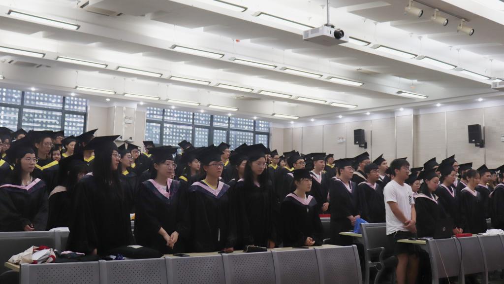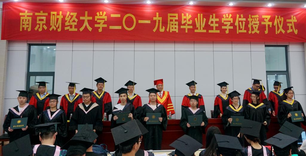 随后,韩忠愿书记宣布全体起立,奏唱南京财经大学校歌。至此,学士学位授予仪式也接近尾声。最后,韩忠愿书记对全体顺利毕业并获得学士学位证书的同学表示祝贺及对未来的祝福,并2019届毕业生学士学位授予仪式圆满结束。