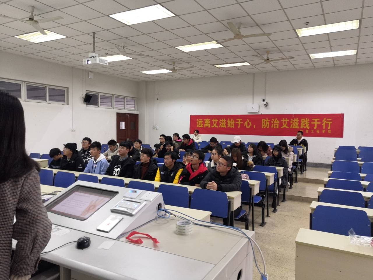 2019年12月1日上午9点,借着世界艾滋病日的契机,南京财经大学信息工程学院分团委志愿服务部于德业楼117教室成功开展“珍惜生命,预防艾滋”宣传活动。本次活动由信息工程学院分团委志愿服务部部长刘宁琪担任主持人,旨在让同学们对艾滋病能够有更加深刻的认识。