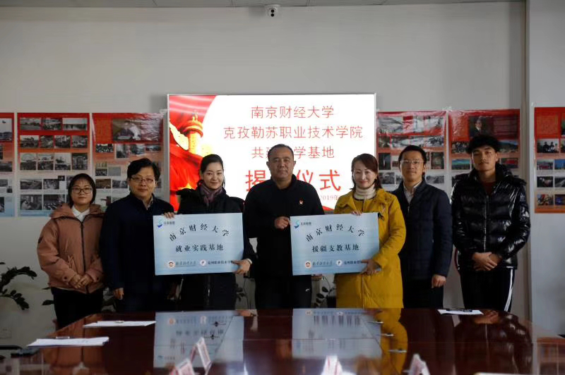 为深入学习贯彻新时代中国特色社会主义和党的十九大精神,积极响应国家援疆号召,补齐克州职业技术学校国语师资不足的短板,我校与克州职业技术学院达成合作,共同探索实施实践教育模式,促进职业教育发展。12月2日,我校和克孜勒苏职业技术学院携手共建援疆支教基地、就业实践基地。 “南京财经大学就业实践基地”、“南京财经大学援疆支教基地”签约授牌仪式在克孜勒苏职业技术学院图书馆举行。克孜勒苏职业技术学院领导丁莉东、阿布都卡德尔、侯志东,我校代表信息工程学院党委副书记吴丹和公共管理学院党委副书记张荣霞、副院长李永乐出席本次活动。