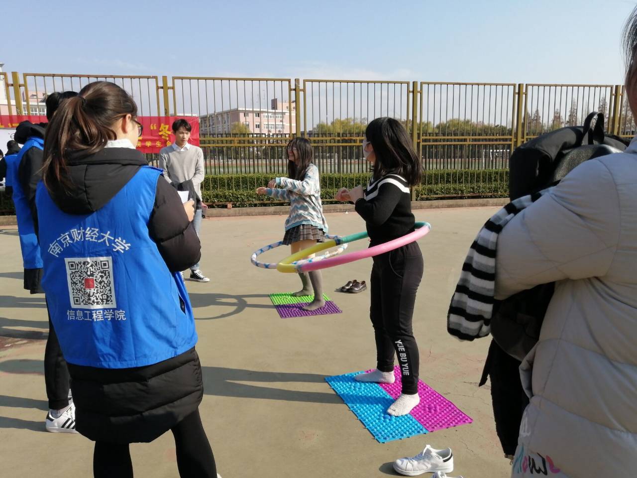 为积极响应共青团中央、教育部、国家体育总局、全国学联共同展开的“三走”号召,激发同学们的娱乐积极性和热情,营造积极健康的校园文化活动气氛,信息工程学院学生会于2019年12月8日下午13:30在西苑篮球场举办了南京财经大学第五届“e”起运“冬”冬季趣味运动会。