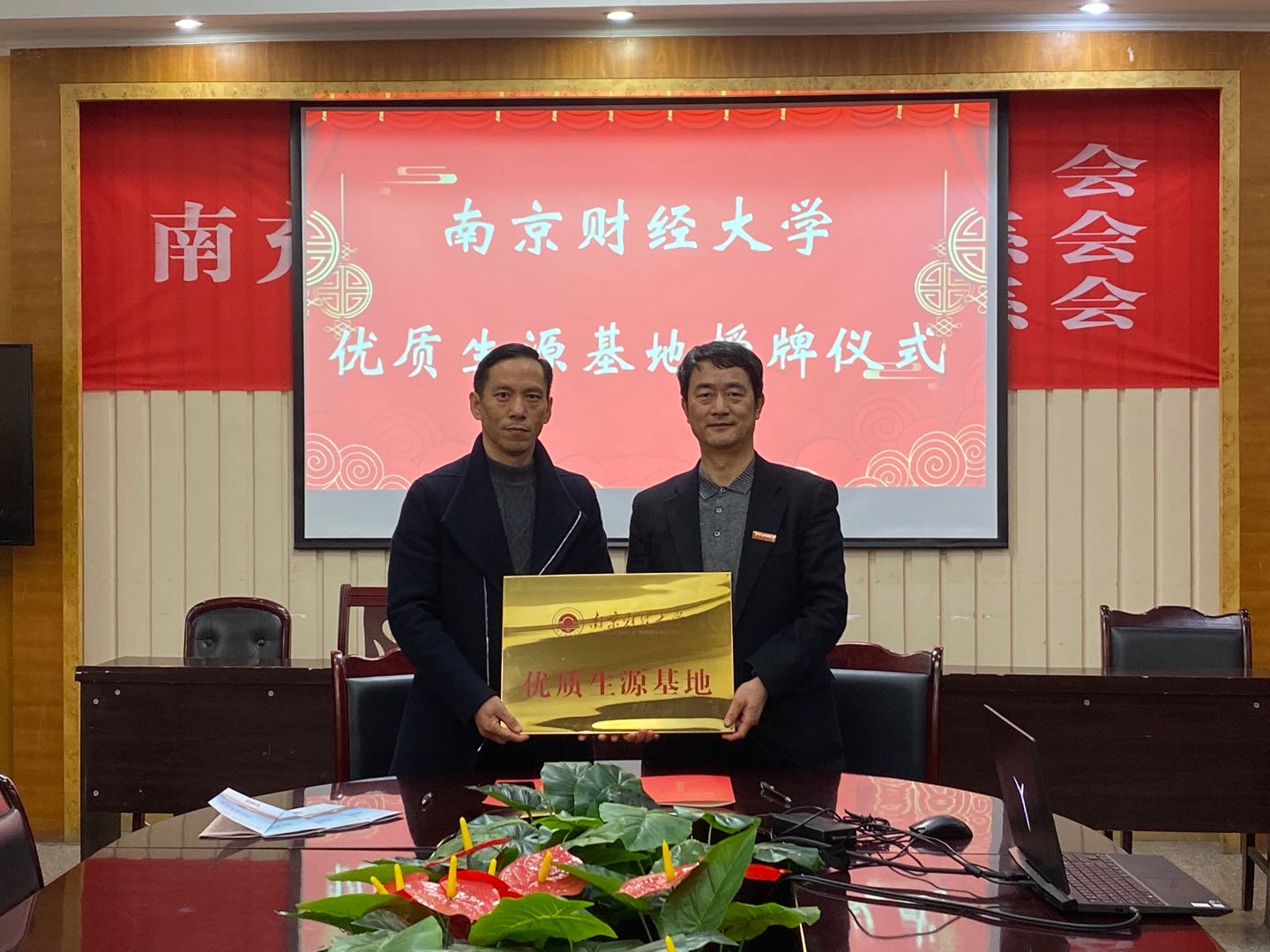 随后,为持续推进协同体战略,对接“大财经”人才需求,韩忠愿教授和王洪秀副校长代表双方签订了《优质生源基地协议》,南京财经大学授予南充一中“优质生源基地”牌匾。