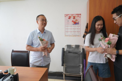 随后小队将学生会精心准备的教师节祝福礼物送给了信息工程学院的副书记袁军老师、院长助理卜湛老师、各专业课老师们,以及照顾学生日常生活学习的辅导员老师们,并向他们送上诚挚的节日祝福。在金秋的九月,感恩小队通过节日礼物和手写贺卡来诉说对老师辛勤耕耘的感谢。
