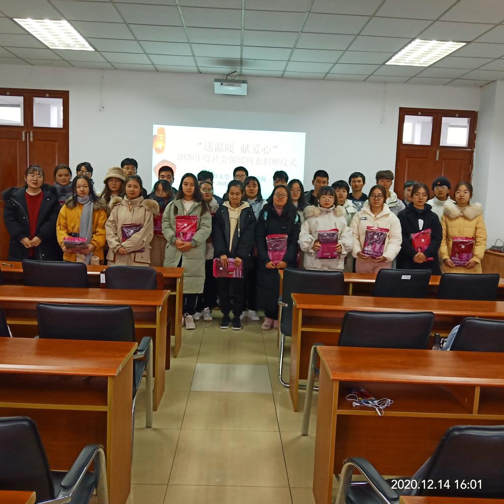 大地有阳光,万物有温暖;信工有暖意,大家过暖冬。12月14日下午,免费足球直播app 贴心为家庭经济困难的学生们送上暖冬衣物,在德业楼406温情举行了“送温暖,献爱心”2020年度社会保暖内衣捐赠仪式,仪式由刘芳老师主持,全体受助学生参加。