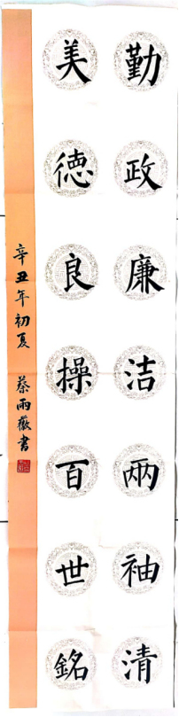 书法比赛给了同学们展示自己的舞台,增加了学生们对祖国语言文字的热爱,进一步弘扬了中国传统文化,同时践行了廉洁行政的号召。希望借这次比赛的东风,加强同学们对廉洁做事的意识,从自身做起,充分发挥好带头作用、监督作用。“用笔在心,心正则笔正”,希望同学们端正姿势,用心写字,踏实做人。