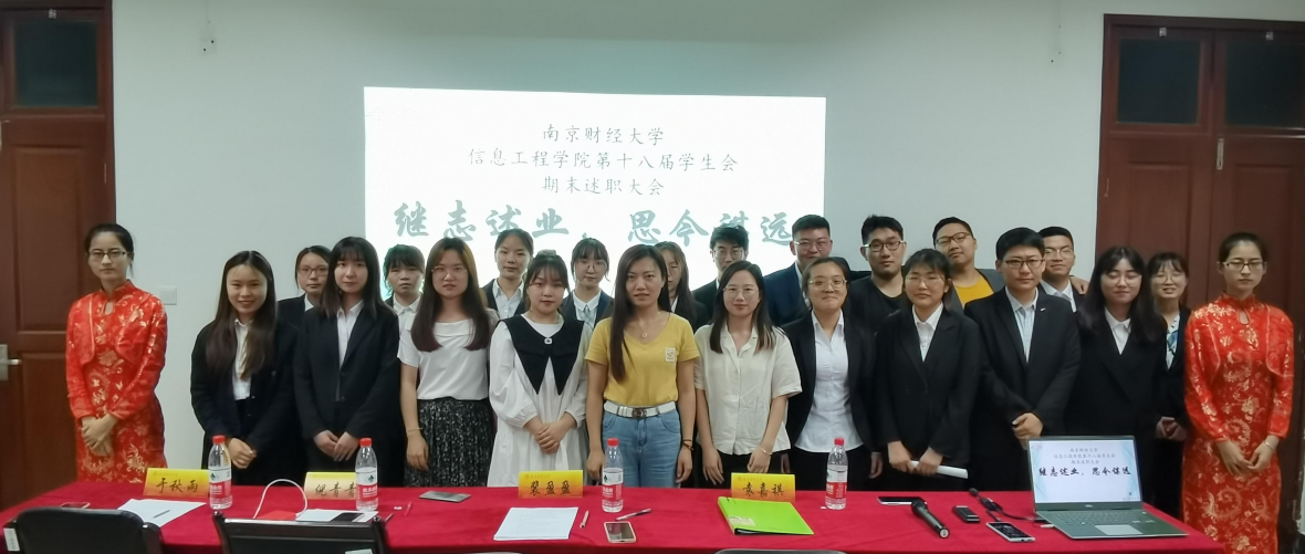 2021年5月20日晚,信息工程学院第十八届学生会期末述职大会“继志述业,思今谋远”于德业楼406会议室召开。出席本次大会的有信息工程学院分团委书记倪青青,学生会主席于秋雨、裴盈盈、袁嘉祺、各班班级代表以及学生会全体成员。