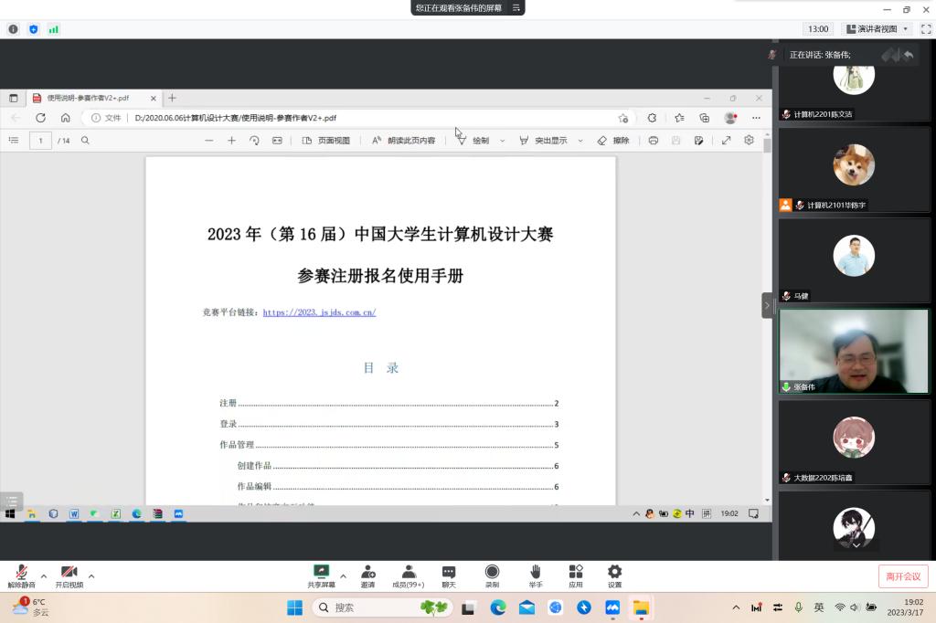 为增加同学们对计算机设计大赛的了解,鼓励同学们积极报名参赛。317日晚,信息工程学院通过腾讯会议平台举办了计算机设计大赛赛前线上指导培训会,会议邀请了学院物联网系主任、江苏省计算机设计大赛评委张备伟老师主讲,学院2021级、2022级近300余名学生参加。会议由院党委副书记马健主持。