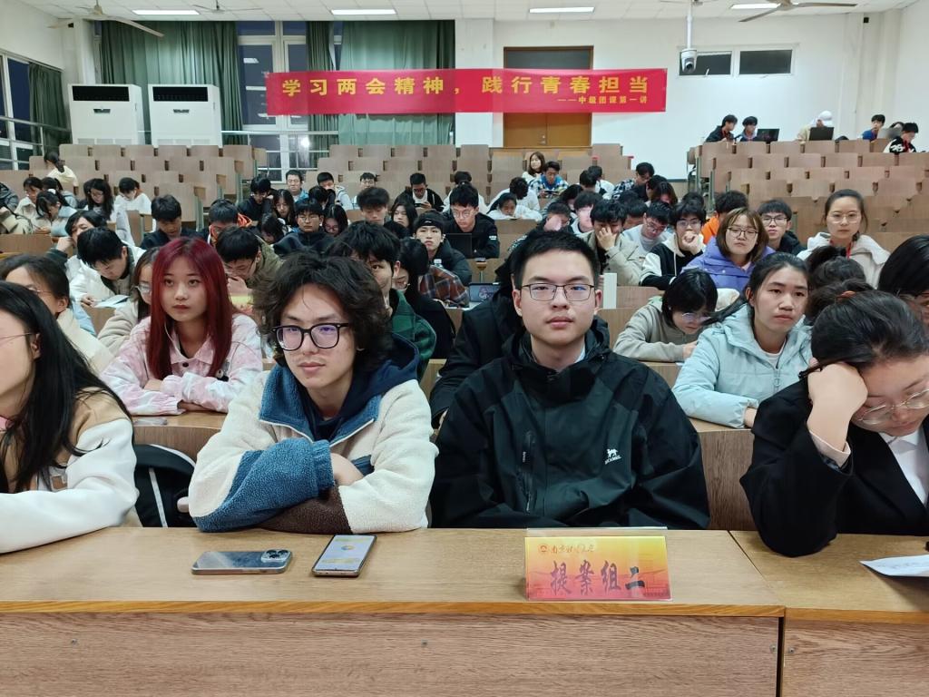 活动中,同学们集体观看了《十四届全国人大一次会议闭幕式》中习近平总书记发表的重要讲话,认真学习重要讲话精神。本次团课主讲人田维宇向大家分享了两会上的“青春之声”。其中,短道速滑运动员任子威关注青少年身心健康,提出推进体教融合,夯实后备人才基础;“95后”阿布洛哈村党支部书记吉列子日投身乡村振兴大舞台,呼吁年轻人回到乡村,为村庄注入“新鲜血液”。年轻的代表委员们,心系祖国,履职尽责,不断为推进中国式现代化贡献青春力量。