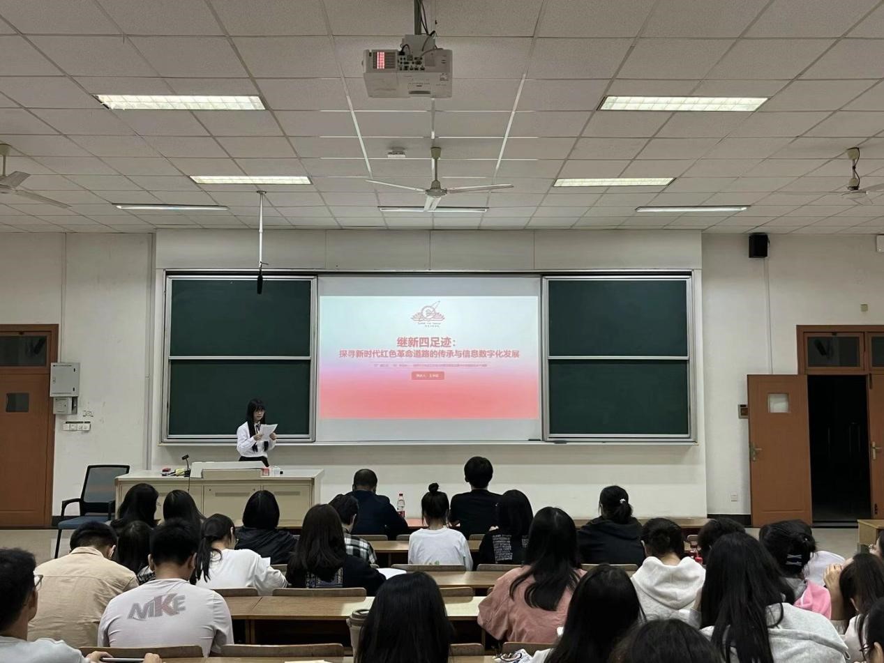 紧接着,“绣见——双线融合视域下助力贵州省金沙县文化IP数字转型赋能乡村振兴的探索者”实践团队、“拨云见皖山,执手共筑梦”助力乡村振兴团队、继新四足迹——探寻新时代红色革命道路的传承与信息数字化发展团队为同学们从项目背景、团队搭建、实践内容、实践成果、心得体会等方面进行分享。