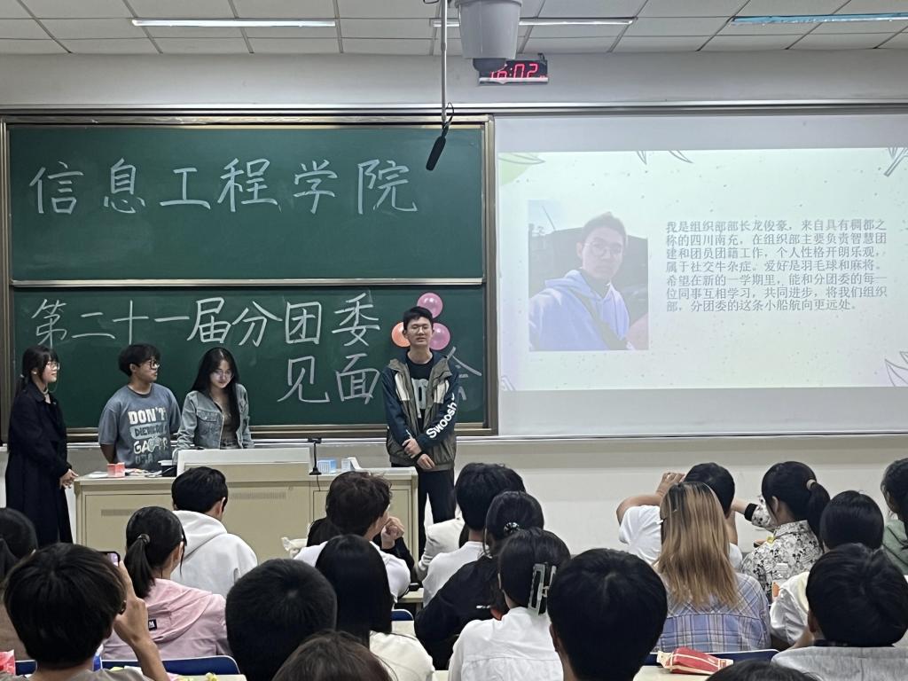 为给分团委干事们搭建一个互相了解和熟悉的桥梁,发扬团委积极向上的精神,增强各部门间的团结协作能力,为往后工作的顺利开展奠定坚实基础,10月16日,信息工程学院团委以“有幸遇见,未来有你”为主题在德业楼103举办第二十一届团委见面大会。