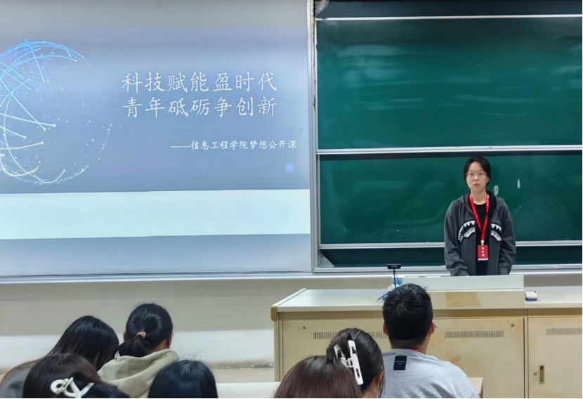 为了跟随时代脚步,了解最新科研情况,认识优秀先进榜样,更好地培养创新精神,10月19日,信息工程学院在博观楼110开展“科研赋能盈时代,青年砥砺争创新”梦想公开课。