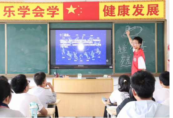 视野开阔课海纳百川,包罗万象,在学生们心中激起全方位的浪潮。他们跟随志愿者迈入浩瀚的星河系,解读黄道十二宫、天球等概念,乘着畅想的浪潮画出寻星路径,同宇宙低语;不断变幻的幻灯片呈现出中华传统文化博大精深的魅力,学生们与诗结伴,与诗同行,以诗为径入唐朝,一起聆听唐诗的音韵,触摸唐诗的生命律动,在华美的辞藻中感受岁月的变迁;志愿者目光炯炯,娓娓道来,平淡而深沉地勾勒出“唐宋八大家之一”苏轼的生平伟绩,带领学生们站在这位文学巨匠的肩膀上,品“一蓑烟雨任平生”,了然一生,轻拂衣袖,欣然而去。