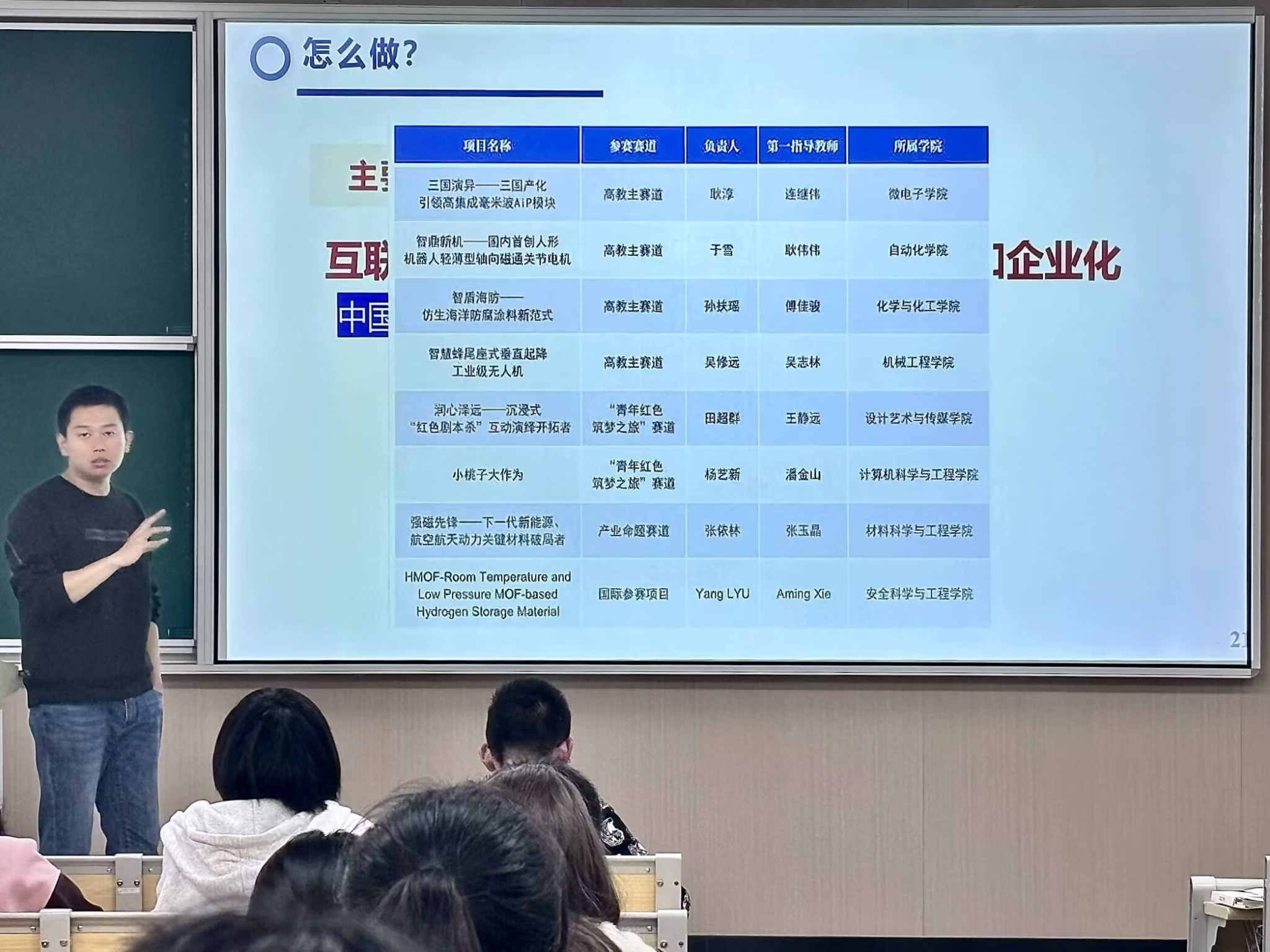 活动伊始,章磊老师从基础学科类和专业学科类竞赛切入,分门别类地将各个比赛的性质、特点、级别以及我校举办每类比赛的流程和注意事项进行了详细介绍,并结合自己多年参赛指导老师工作经验,向大家强调了比赛过程中的重点和难点。