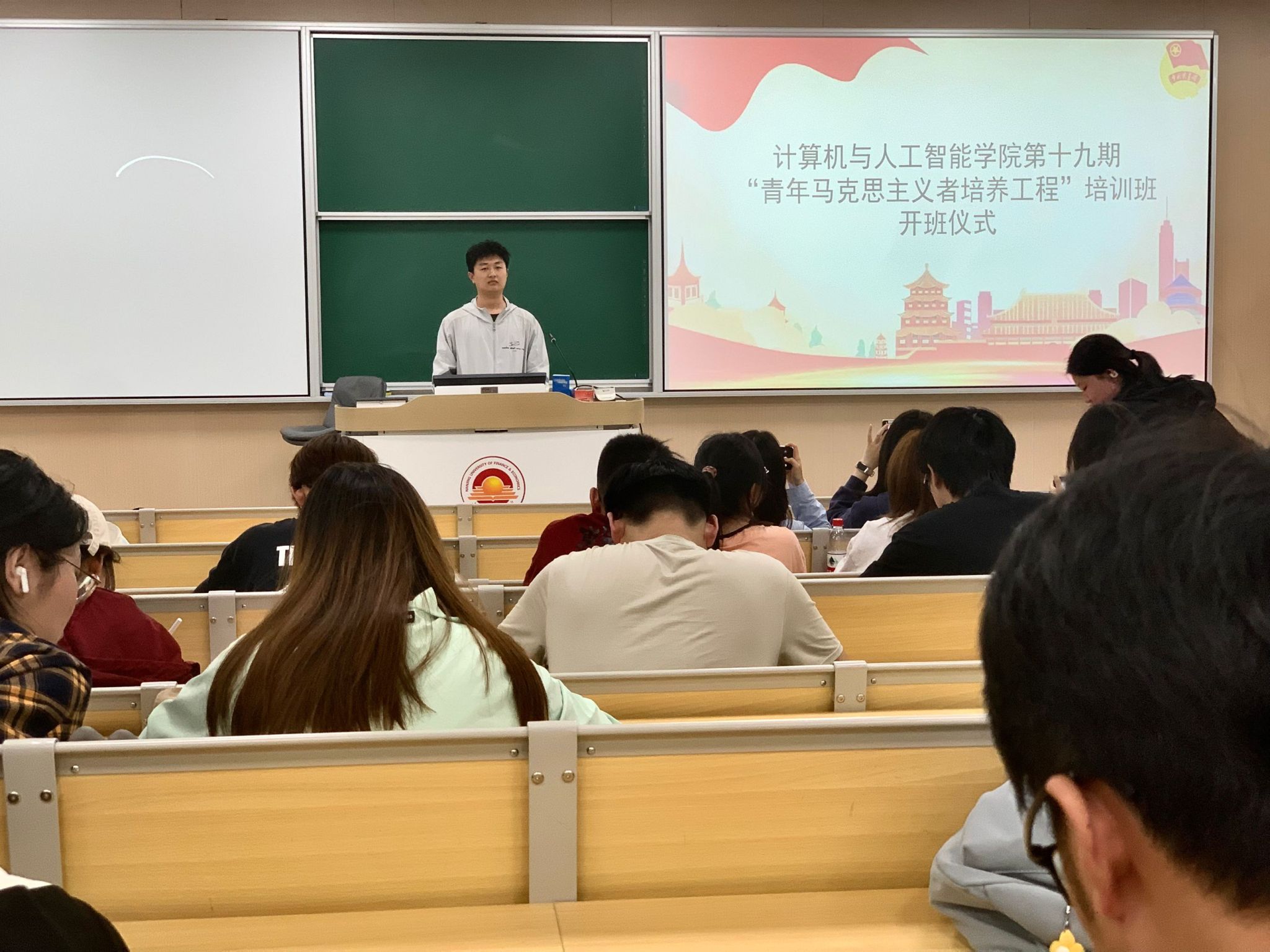学院党委副书记马健进行开班动员。他首先对第十八期学员的成长表示祝贺,随后向第十九期学员提出四点殷切希望:一要筑牢信仰之基,做马克思主义的坚定信仰者和忠实实践者;二要锤炼过硬本领,以 “求知若渴” 的态度汲取知识,以 “脚踏实地” 的作风投身实践;三要胸怀 “国之大者”,将个人理想融入国家发展大局,在时代洪流中找准人生坐标;四要勇担时代之责,立足计算机与人工智能专业特色,以科技报国的赤子之心投身创新实践。