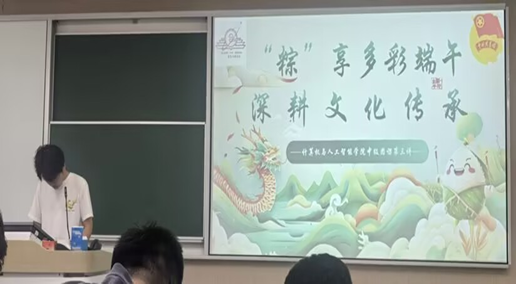 在博观楼201举办“‘粽’享多彩端午,深耕文化传承”主题团课活动。活动通过文化溯源、符号解码与互动交流三大环节,带领同学们感受端午文化的深厚底蕴与时代价值。