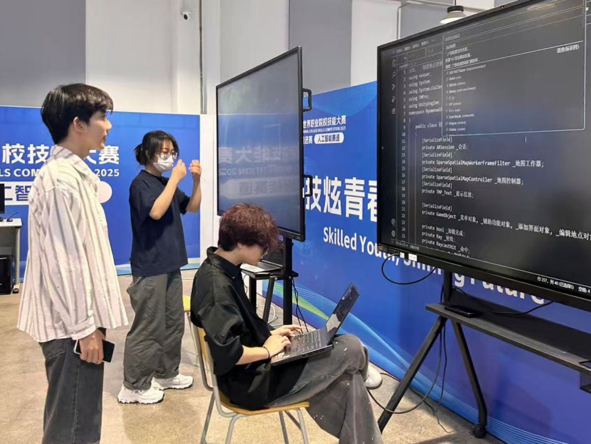 本届大赛以“技炫青春 能创未来”为主题,首次增设人工智能赛道。赛事组委会强调,人工智能技术的创新必须扎根于真实场景,要求参赛队伍围绕生产管理、民生服务等实际需求设计AI项目,在1小时内完成技能操作、系统演示与项目讲解的全流程考核。这不仅考验技术实力,更考验团队对社会需求的洞察力与问题解决能力。“听见视界”团队带着对视障群体的深切关注,从备赛初期就将目光锁定在导盲辅助这一民生痛点上,历经半年的调研与研发,最终带着成熟的系统方案站上赛场。