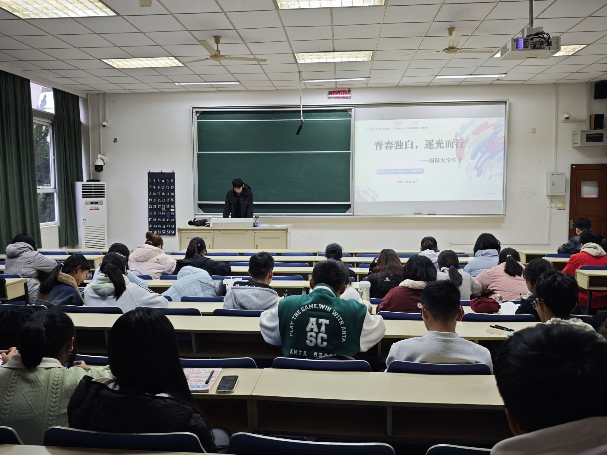 活动伊始,主持人冯逸翔向在座同学详细介绍了国际大学生节的起源及其深远意义。他提到,国际大学生节是为了缅怀反法西斯战争时期的青年学子,传承他们积极投身社会事务、为人类进步事业不懈奋斗的精神。