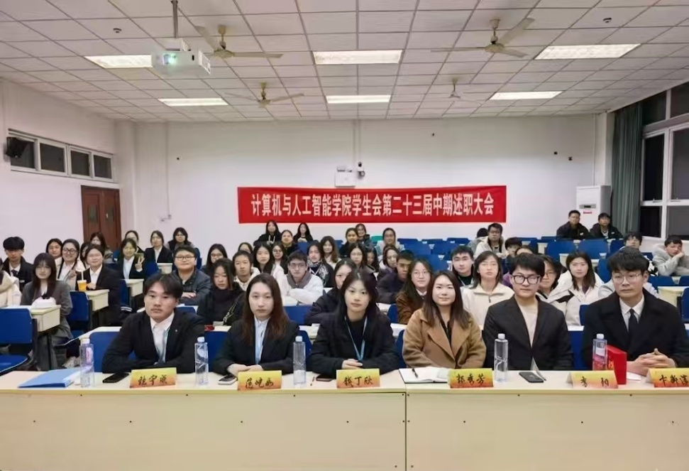 第二十三届学生会中期述职大会于12月10日于德业楼112进行。院团委书记郭秀芳老师,学生会主席钱丁欣、张宇成、范屹如,法学院学生会主席李阳、金融学院学生会主席卞新淳出席此次会议,各班班长、学生会全体成员参加此次会议。