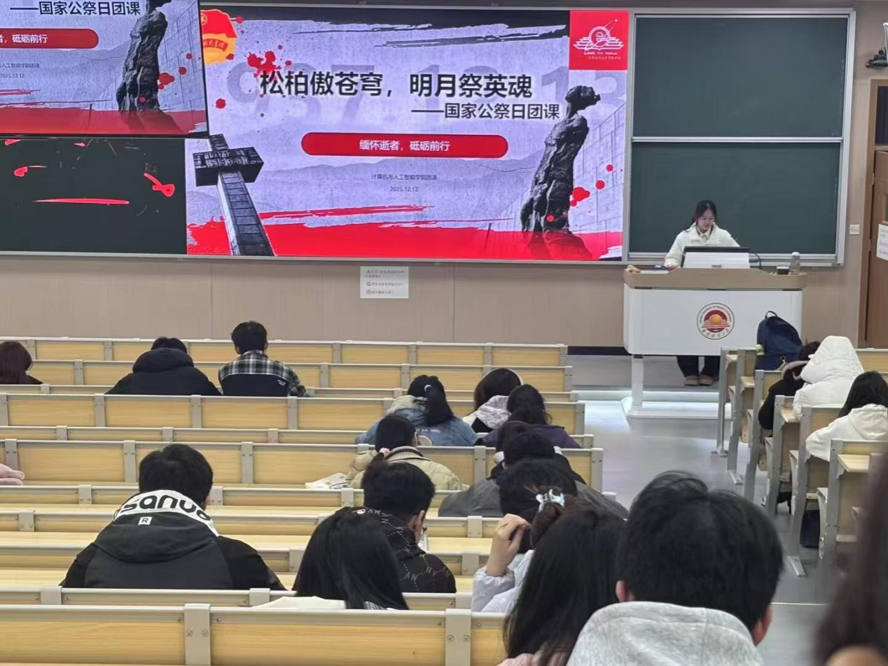 于博观楼201教室举办“松柏傲苍穹,明月祭英魂”国家公祭日主题团课,学院众多青年学生参加。活动现场庄严肃穆,秩序井然,展现出青年一代对历史的敬畏与对国家的赤诚。