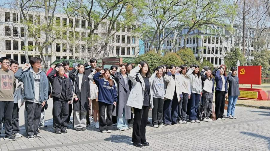 英雄事迹感召人心,铮铮誓言砥砺前行。在党员代表钱丁欣同学的带领下,全体同学高举右拳、庄严宣誓,铿锵有力的誓言回荡在纪念碑前,既是对革命先烈的深切告慰,更彰显了学子们传承英烈精神、勇担时代使命的坚定初心与决心。