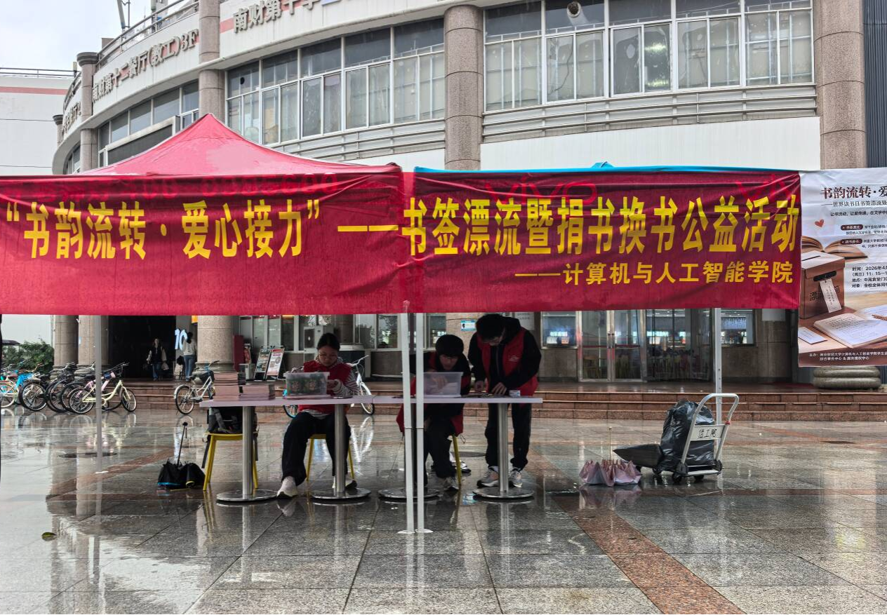 在中苑食堂门口成功举办“书韵流转·爱心接力”书签漂流暨捐书换书公益活动。本次活动面向全校同学开放,以阅读交流与爱心公益相结合的形式,让书香与善意在校园里双向流转。