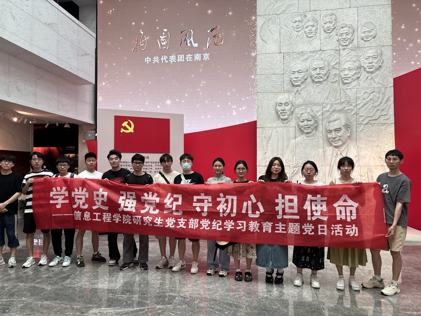 为了增强历史自觉,加强党纪学习,赓续红色基因, 5月18日信息工程学院研究生党支部组织党员、发展对象和入党积极分子前往南京市梅园新村纪念馆开展了“学党史,强党纪,守初心,担使命”为主题实践学习活动,接受党史教育和廉洁教育