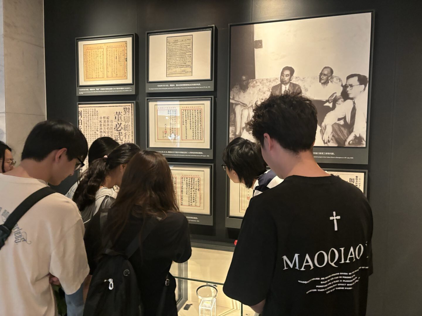 通过馆内丰富的历史资料和志愿者生动的讲解,支部成员共同回顾了中国共产党在梅园新村的重要历史事件和光辉历程。展厅内珍贵的照片和文物,让同学们了解到当年中国共产党为推动国内和平而做出的伟大贡献,认识到周恩来等老一辈革命家处变不惊、从容机智的大将风度和傲霜斗雪、蔑视强权的坚强意志。梅园新村作为中国共产党代表团驻地,是中国革命史上的重要一环,承载着中共代表团在艰苦岁月里坚持不懈斗争的光辉历史。陈列馆中有一件周恩来同志的西服引起了大家的注意,这是组织上为了周恩来同志参与国共谈判而购置的一件西服,周恩来非常珍惜党的经费,日常很少穿,每次穿的时候都要戴上护袖,防止袖口磨损,生活中点点滴滴都体现出老一辈革命家清廉奉公的伟大品格。