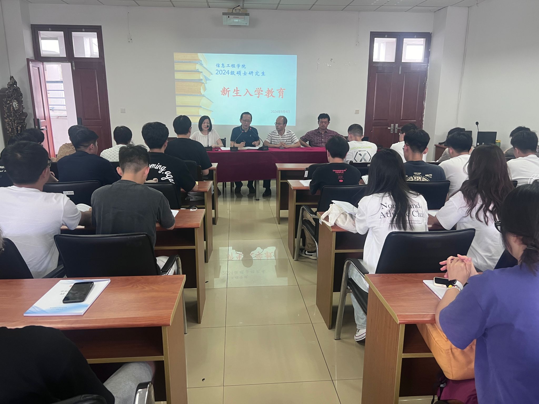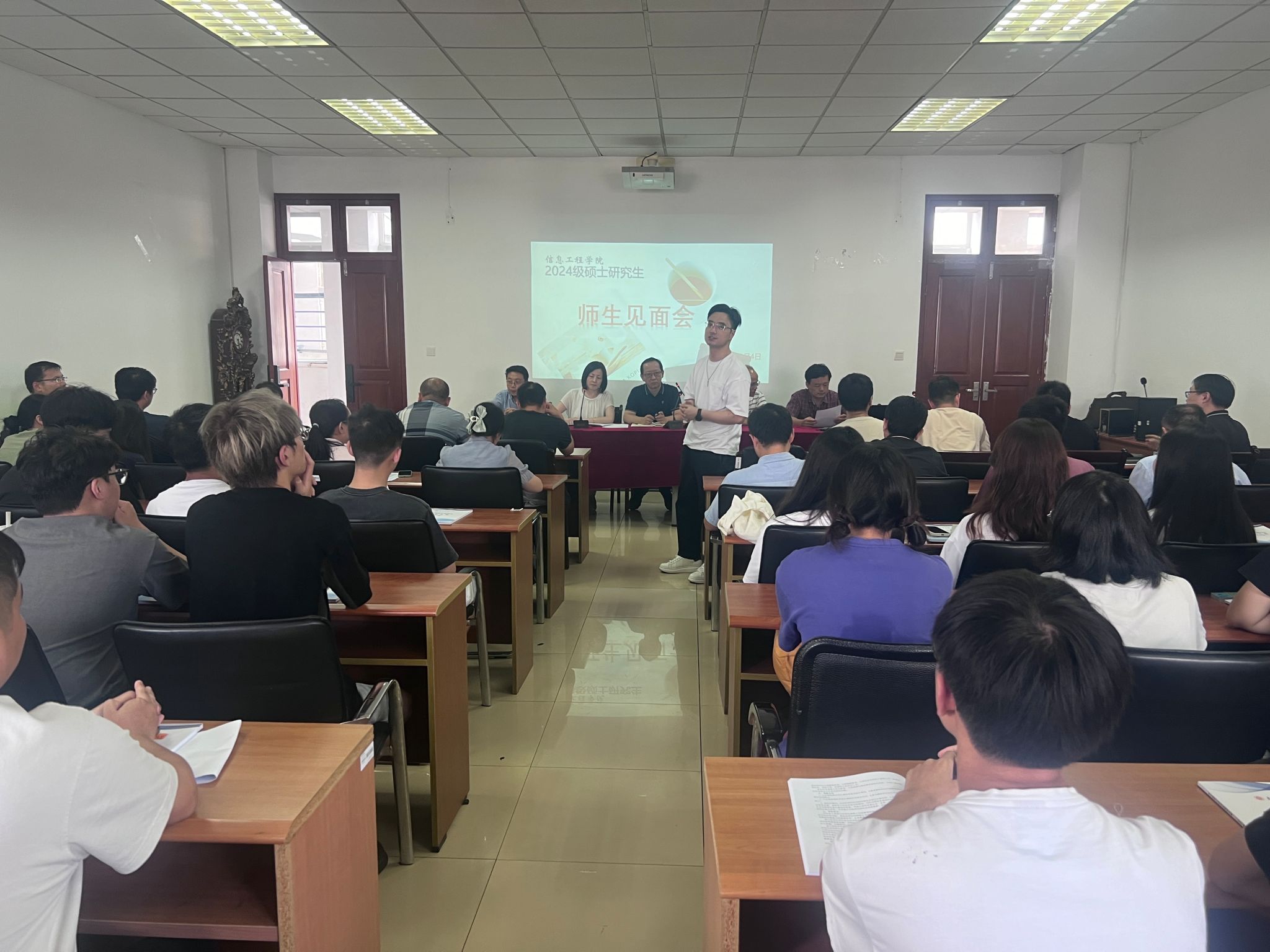2024级硕士研究生师生互选工作的顺利开展,同时帮助新一届研究生以良好的精神风貌开启研究生学习生涯,9月4日,信息工程学院在德业楼406举办了2024级研究生师生见面会暨新生入学教育大会。信息工程学院党委书记张阳军,院长黄健,副院长马福民、李树青,全体研究生导师,研究生秘书倪青青,研究生辅导员郭秀芳及全体研究生新生参加此次会议。大会由学院分管研究生工作副院长马福民主持。